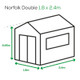 The 2.4m x 1.8m Norfolk double door shed has an Apex roof allowing more height inside the structure. This shed is constructed from tongue and groove shiplap even the floor and roof! Shiplap is advantageous as it allows water to run off it, this can increase its waterproof ability and will prevent draughts from penetrating between the boards. This shed is supplied with quality polyester roofing felt.The double doors are fully framed and braced, with three hinges per door. This shed has two windows side-by-side which allow in lots of natural light. The window side can be either the left or the right-hand side. The framing on this sturdy shed is 45mm x 34mm. The door locks by lock slide bolt. We recommend treating timber sheds within 6 months of installing. As with all timber products, regular treatment and maintenance is advised. Remember that you need a good solid base for your shed, check out our advice page for more info.